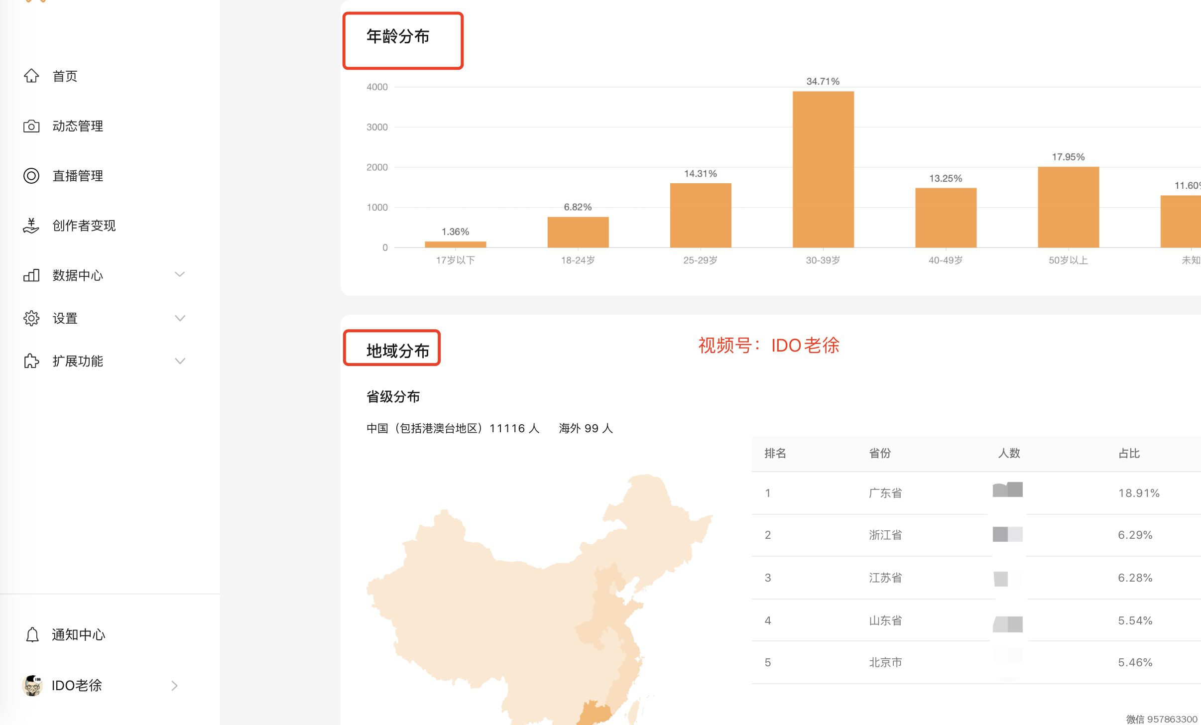 视频号关注用户的性别分布、年龄分布、地域分布(省份分布、城市分布)