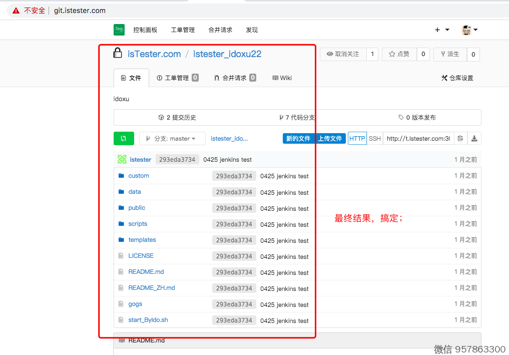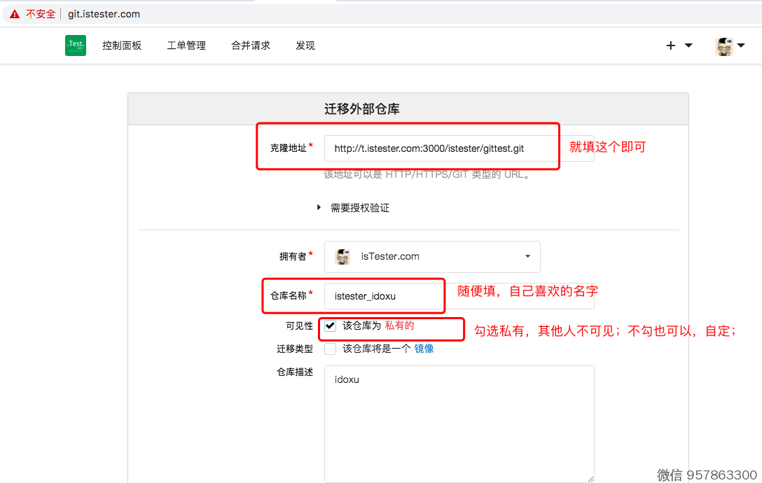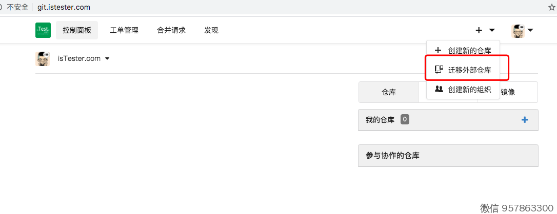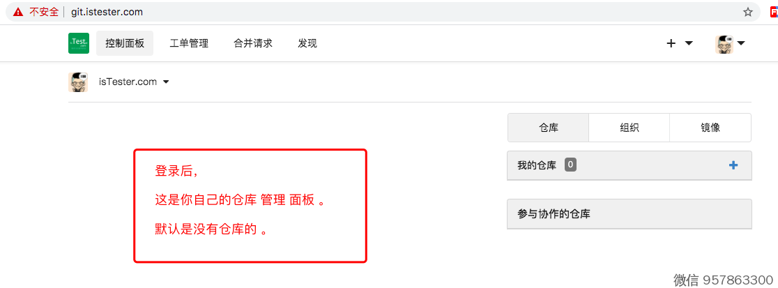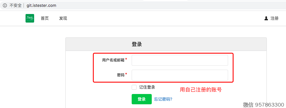 浏览器,打开 http://git.istester.com/