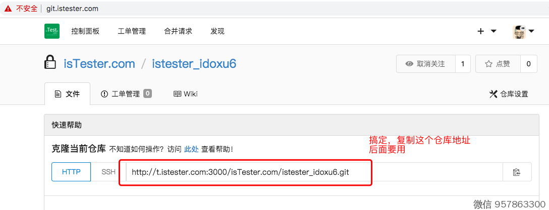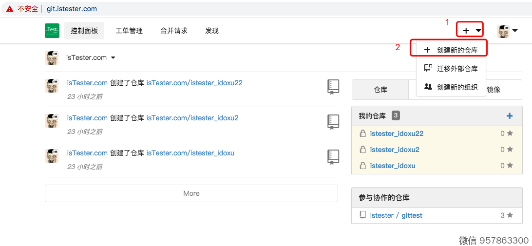 浏览器,打开 http://git.istester.com/