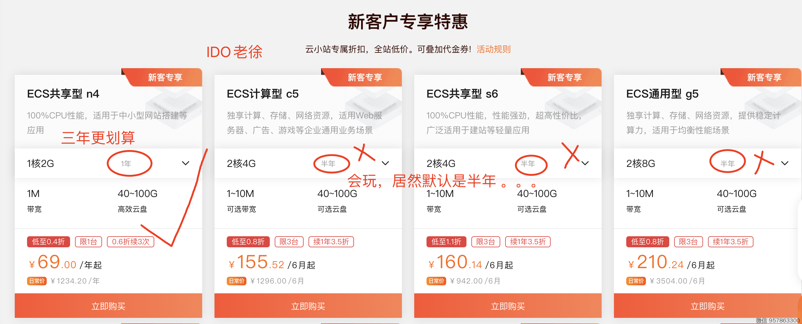 总之,个人用,买最便宜的ECS云服务即可,足够用(经验谈:IDO老徐 ,仔细研究过阿里云的优惠策略;如果不差这点费用且Linux常年需要用,或者想搭建个人博客的;购买三年是最划算的) 。